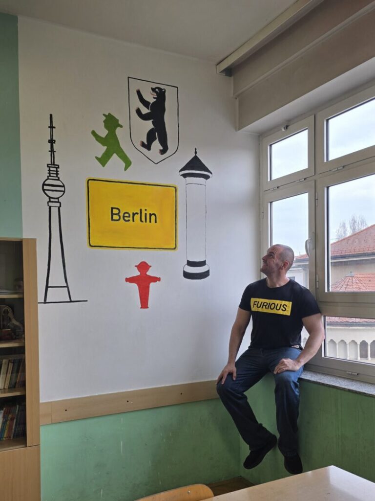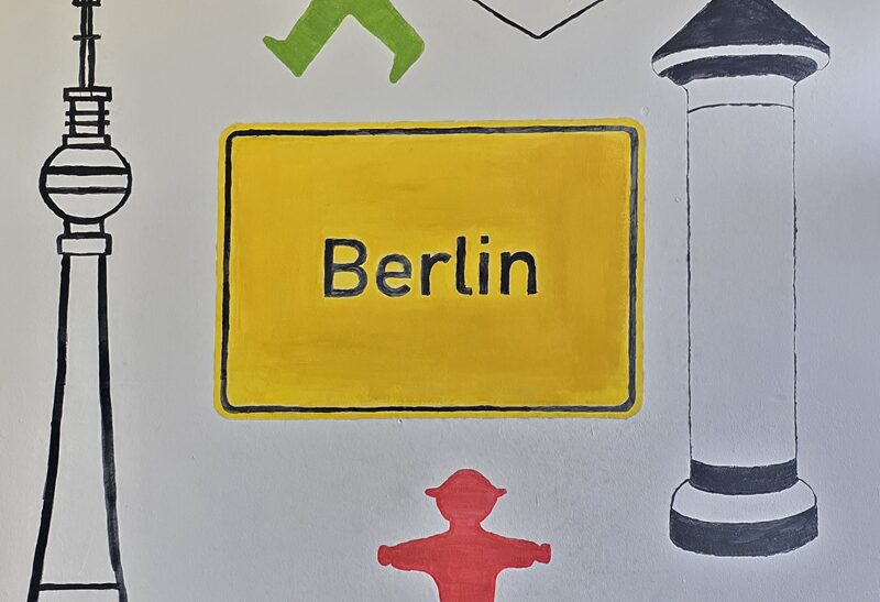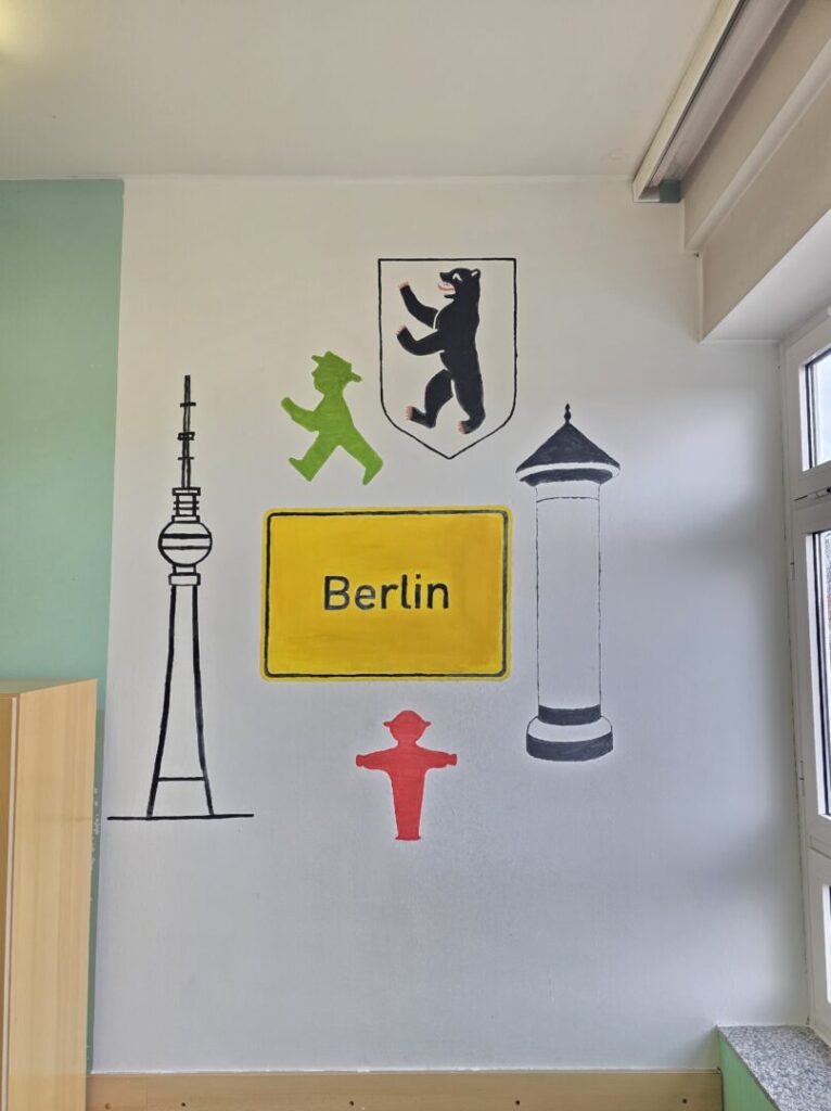 Na zidu su se tako našli prepoznatljivi simboli Berlina: televizijski toranj (Fernsehturm), poznati „Ampelmännchen“, berlinski medvjed s gradskog grba, karakteristični oglasni stup “Litfaßsäule” (izum berlinskog tiskara Ernsta Litfaßa) te prometni znak s imenom grada. Učenici su sudjelovali u osmišljavanju idejnog rješenja, pripremi i samom oslikavanju, pokazujući pritom kreativnost, timski rad i velik entuzijazam.