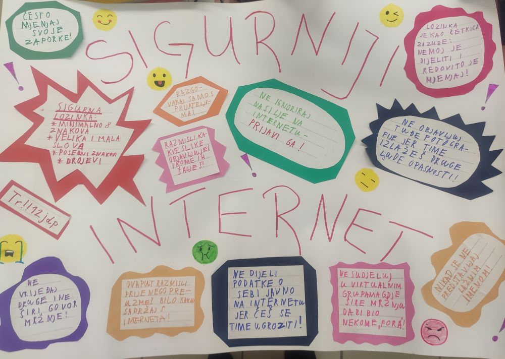 Prošli tjedan u našoj školi bavili smo se temom sigurnijeg interneta. Održano je mnoštvo radionica i predavanja s lazličitim temama. Razgovaralo se o cyberbullyingu, sextingu, groomingu, sextortionu, osjećajima na internetu, virusima. Naglasak je bio o načinima zaštite te kome se obratiti za pomoć. Učenici su upoznati sa Red Buttonom (za prijavljivanje zlostavljanja na internetu) i platformom Help4U koja daje savjete ukoliko se netko nađe u problemima na internetu.
