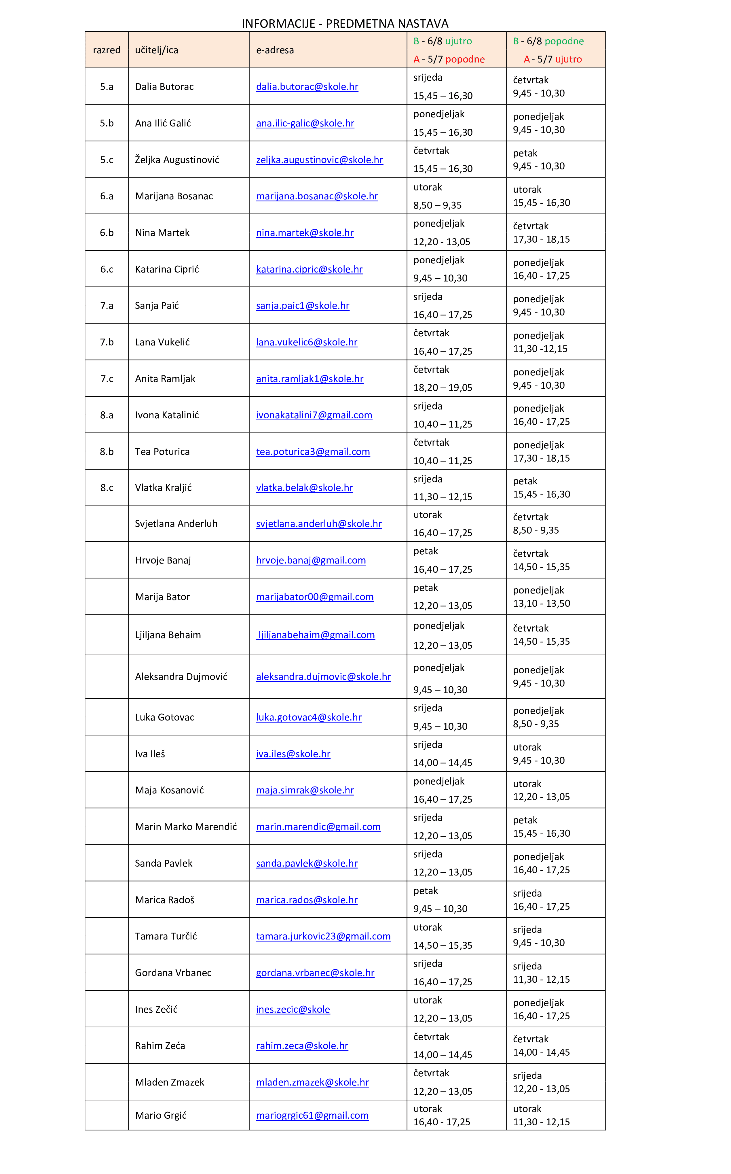 Za razgovor se potrebno najaviti najmanje jedan dan ranije na način kako je dogovoreno s razrednikom odnosno putem danih