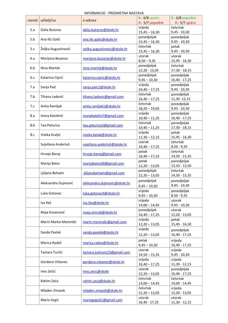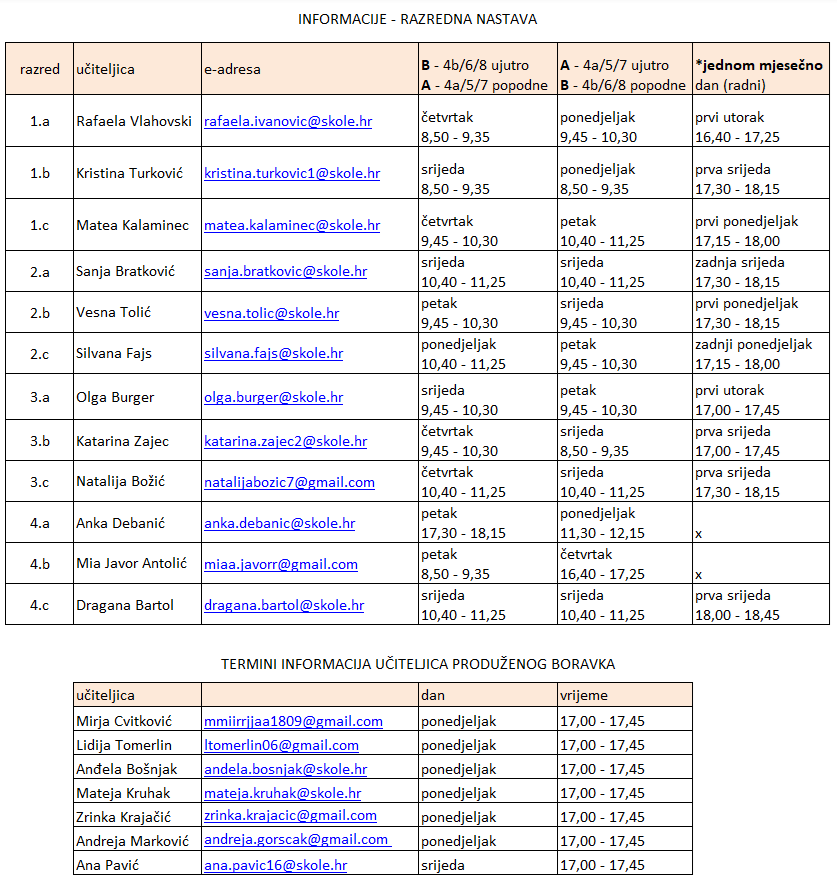 Za razgovor se potrebno najaviti najmanje jedan dan ranije na način kako je dogovoreno s učiteljicom.