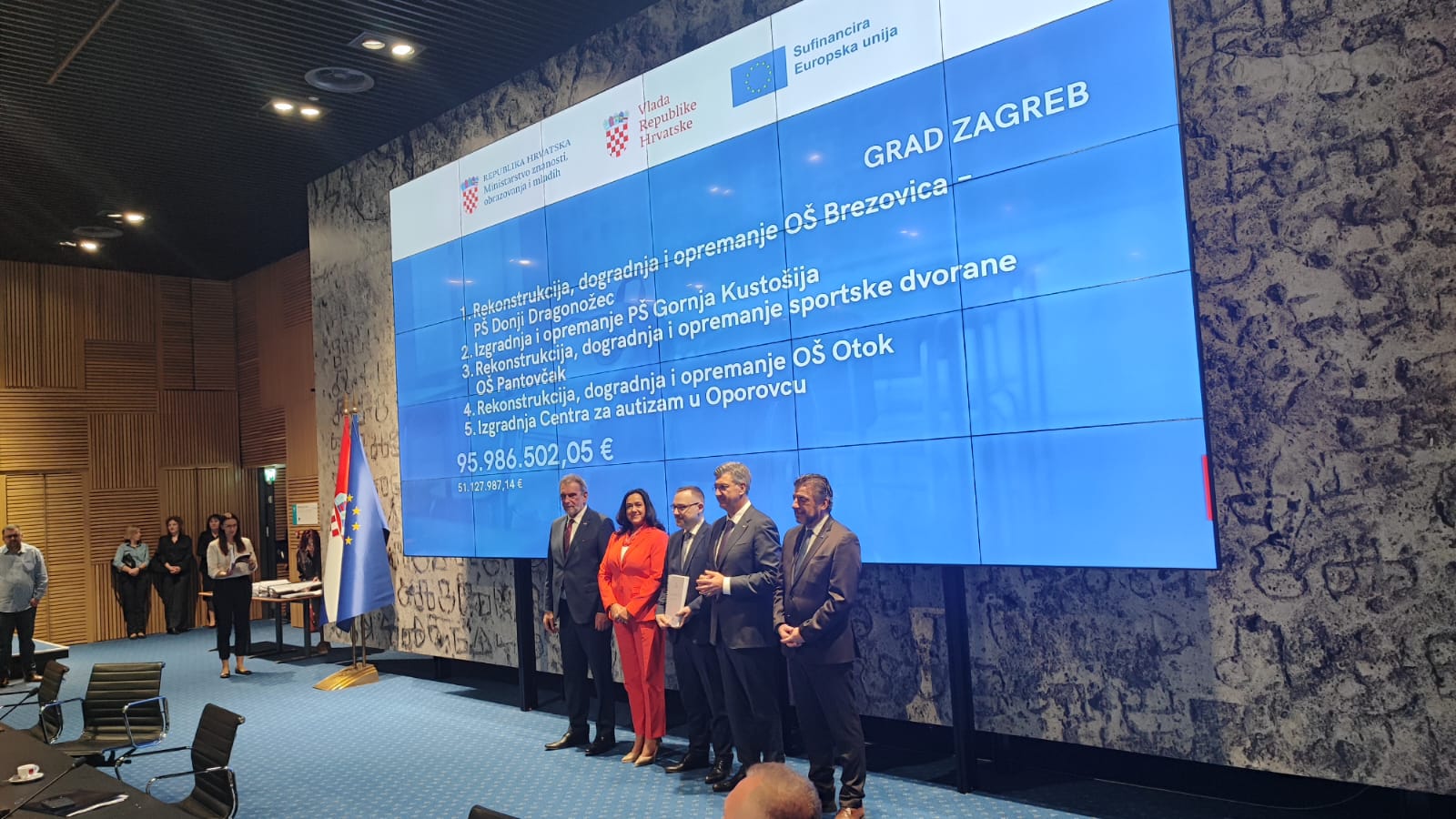 9. travnja 2026. godine u Nacionalnoj i sveučilišnoj knjižnici predsjednik Vlade Andrej Plenković i ministar obrazovanja Radovan Fuchs dodijelili su u četvrtak 52 ugovora za izgradnju, rekonstrukciju i opremanje osnovnih škola za potrebe jednosmjenskog rada.