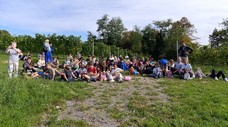 Profesor Ivica Ljubičić pokazao nam je rad ljudi u vinogradu i kako nastaje vino. Upoznali smo i mnoge samonikle biljke brežuljkastog zavičaja, a na kraju smo se zasladili slatkim grožđem.