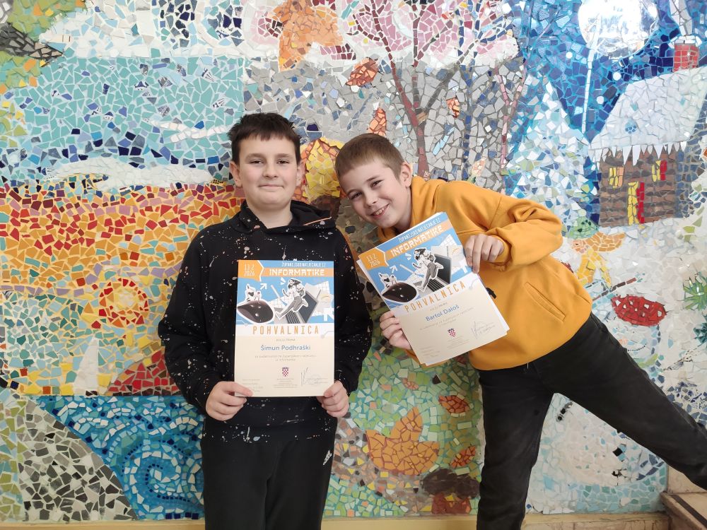 Na županijskom natjecanju iz informatike koje se održalo 13. veljače u OŠ Žuti brijeg, našu školu su predstavljala dva učenika.