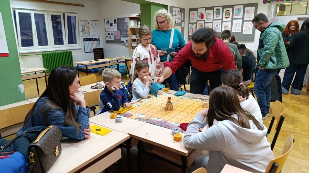 Učiteljice Olga Burger i Anđela Bošnjak su s učenicima uključenima u projekt „Daroviti sat uz Kustošak“ organizirale igre u kojima se mozgalo i smišljalo rješenja uz smijeh i zabavu. U goste smo pozvali i „Planet zabave“ koji je predstavio učenicima zanimljive i interaktivne igre koje potiču misaone vještine.
